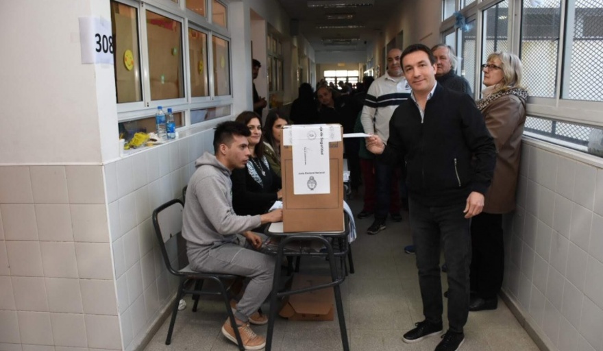 🗳#ELECCIONES #PASO El intendente Andrés Watson (Frente de Todos), junto a su familia, ingresa a votar en la Escuela N° 14.
