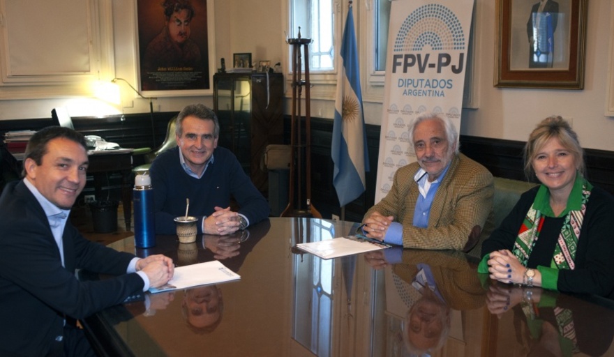 El Intendente Andrés Watson junto al rector de la Universidad Nacional Arturo Jauretche, Ernesto Villanueva, fueron recibidos hoy por el diputado nacional y presidente del bloque del Frente para la Victoria, Agustín Rossi, y la diputada Cristina Álvarez Rodríguez, para impulsar la presentación de un nuevo proyecto de Ley para la creación del Hospital Y Campus Universitario en los terrenos de la ex fábrica de colchones “Sueño Estelar”, en Florencio Varela.