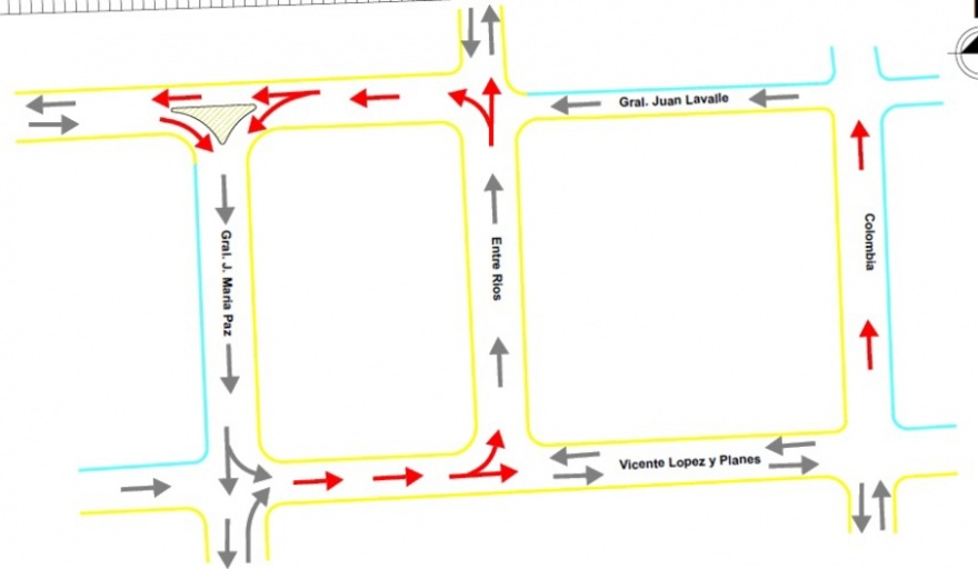 -Los vehículos que transiten por Lavalle con sentido al cruce de las vías, ahora deberán doblar por General Paz (se colocará una isleta para el desvío), luego irán por Vicente López y Planes hasta retomar en Entre Ríos hacia la barrera.