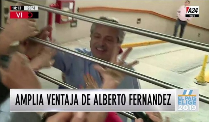 Minutos después del cierre de la votación nacional, el candidato del Frente de Todos, Alberto Fernández salió a saludar a decenas de militantes que se agruparon en las puertas del edificio donde vive en el barrio de Puerto Madero. "Es un gran día para la Argentina", afirmó.