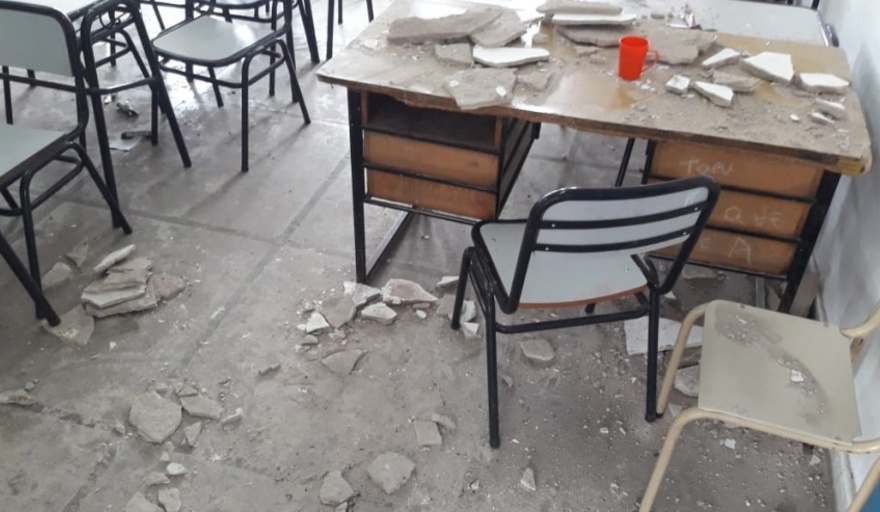 El desprendimiento de parte del techo en la Escuela Secundaria N° 28, de Villa del Plata, todavía genera un ida y vuelta entre el Consejo Escolar y la Provincia por las resposanbilidades en las infraestructuras de los colegios.