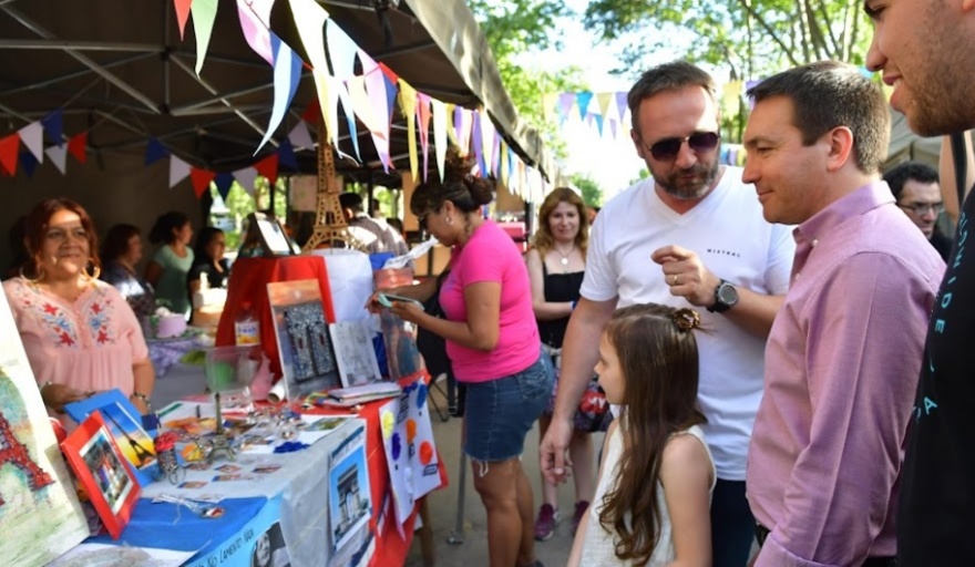 La muestra desplegada sobre la calle 25 de Mayo, desde la intersección con Maipú hasta el cruce con Chacabuco, estaba conformada por diferentes stands donde se pudieron observar trabajos de carpintería, tejido, fotografía, cerámica, perlas facetadas, pintura, caligrafía, dibujo e indumentaria.