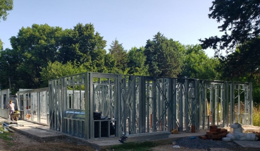 Actualmente, los operarios trabajan en el replanteo y armado de la estructura en perfilería del sistema Steel Framing (construcción en seco), en una superficie de trabajo de 270 m2.