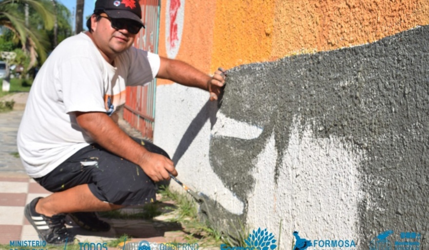 El Movimiento Formoseño de Muralistas organiza un Encuentro Internacional de Muralismo, del 4 al 10 de febrero, para dejar su arte en algunos puntos de la capital de la provincia. Diego Candia, representante de la Secretaría de Cultura de Florencio Varela, realiza su aporte bajo la consigna "Latinoamérica unida por la tierra".