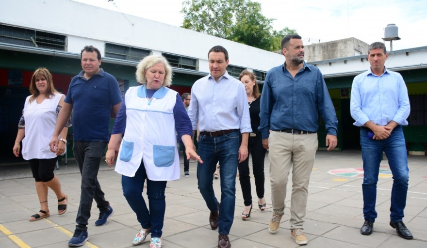La máxima autoridad distrital examinó las tareas de renovación efectuadas en el establecimiento educativo radicado en el barrio La Sirena: labores de mantenimiento edilicio más pintura en las aulas efectuadas por miembros de la cooperadora, auxiliares de la institución e integrantes del Movimiento “Barrios de Pie”.