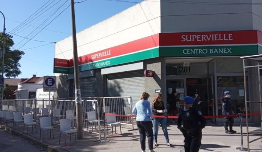 En simultáneo, agentes policiales custodian la zona bancaria, áreas adyacentes y realizan el corte de calles pertinente para organizar la circulación vehicular.