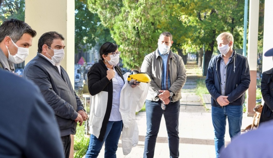 En el lugar estuvieron presentes el Secretario del área Diego Trejo, junto al Secretario de Salud, Rubén Trepicchio y el Secretario General del Sindicato Municipal, Dario D'aquino, quienes les garantizaron la utilización y reposición de dichos elementos, necesarios para desarrollar los trabajos tomando las medidas de seguridad necesarias para el manejo de los cuerpos que presenten casos de COVID - 19.