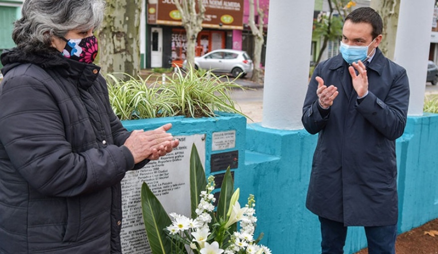 “Nos parecía muy importante poder homenajearlo con una placa aquí en la pérgola, debido a que la pandemia no nos permitió acercarnos como quisimos en su momento”, describió Watson, quién en la ocasión estuvo acompañado por la presidenta del Concejo Deliberante, Laura Ravagni.