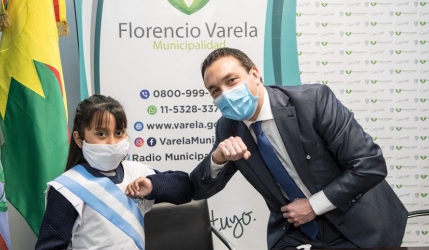 Con las medidas pertinentes de prevención y distanciamiento establecidas contra la pandemia, el Jefe Comunal, estuvo acompañado por diferentes autoridades y representantes de instituciones del distrito, con quienes además izó la bandera bonaerense y la varelense, en el día del segundo aniversario de su presentación ante la comunidad.