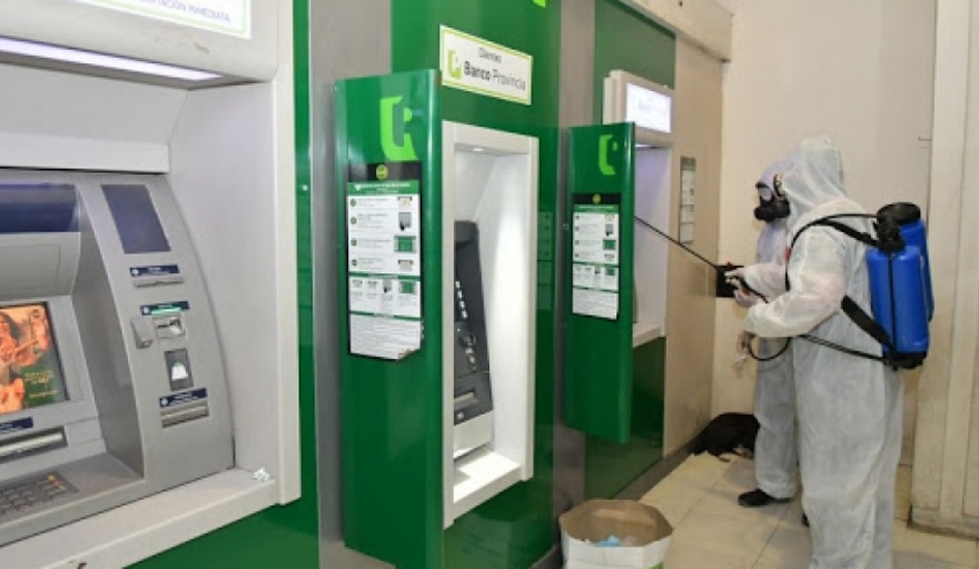 Las tareas de limpieza y esterilización de cajeros automáticos se llevaron a cabo en los dispositivos electrónicos ubicados en barrio Centro, Villa Vatteone (sobre calle Mainini), Km 26.700, Cruce Varela, y sobre av. Lujan.