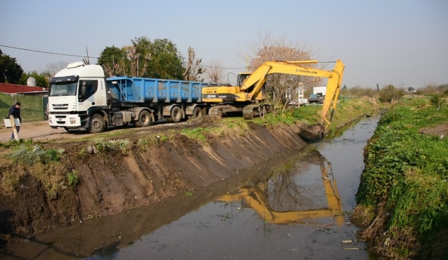 Cuadrillas municipales de Florencio Varela realizaron ayer la limpieza y saneamiento del arroyo San Juan, que libera el caudal de agua cuando llueve, beneficiando a los barrios Sarmiento, Los Pilares, San Francisco y Curva de Chávez.