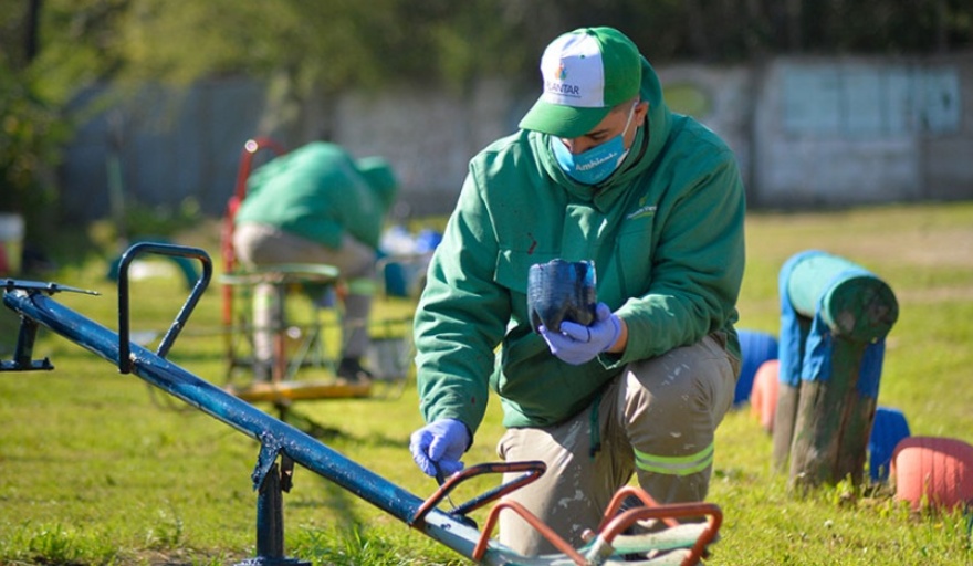 Realizaron trabajos de desmalezado, descacharrización, forestación más la pintura de hamacas, toboganes o calesitas. Emplearon maquinaria de gran porte para remover montículos formados por desperdicios domiciliarios y recoger ramas acumuladas. En simultáneo, instalaron cartelería con la leyenda “Prohibido arrojar residuos” para evitar la formación de basurales a cielo abierto.
