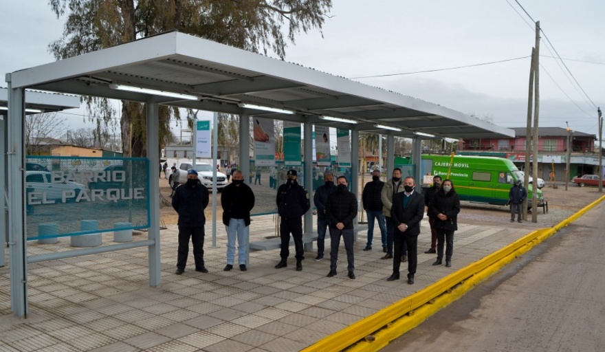 El intendente Andrés Watson inauguró un nuevo punto seguro esta mañana en la zona ubicada en diagonal Los Tehuelches, entre 1.148 y diagonal Los Yaganes (plaza La Carolina), de la localidad de Ingeniero Allan.