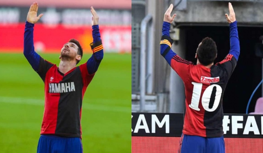 Lionel Messi festejó su gol, el cuarto del equipo catalán, con una celebración dedicada a Maradona: se sacó la 10 del Barça y mostró que debajo tenía la casaca de Newell’s con la número 10, la misma que usó Diego en su paso por el club rosarino.