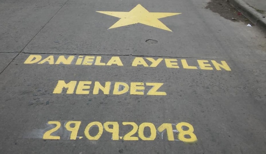La Estrella Amarilla aparece sobre el asfalto de la Avenida Senzabello y Ameghino, en menoria eterna a Daniela Gómez que perdió la vida el 29 de septiembre pasado al ser atropellada por Pablo Palacios.