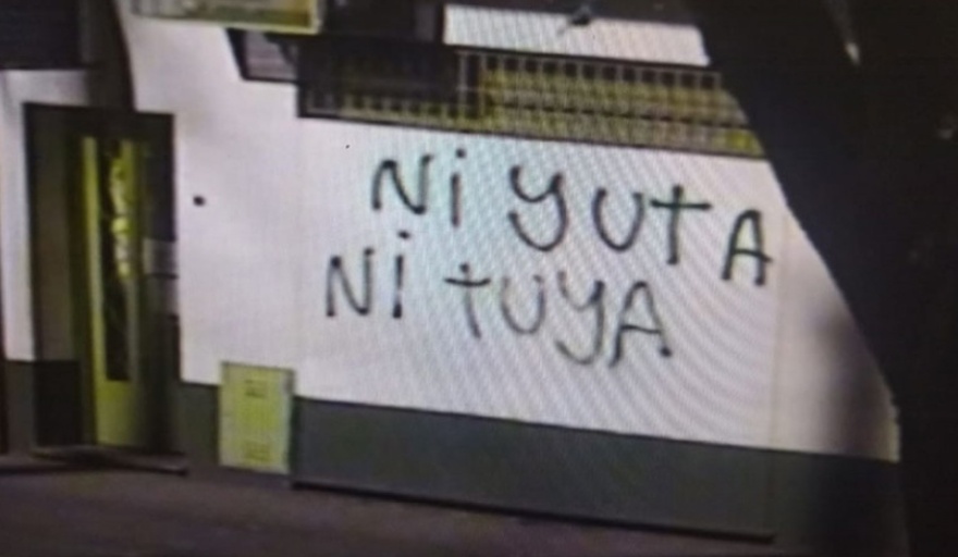 Los involucrados también hicieron pintadas en la Plaza y en los asientos de ingreso a la sede de la intendencia.