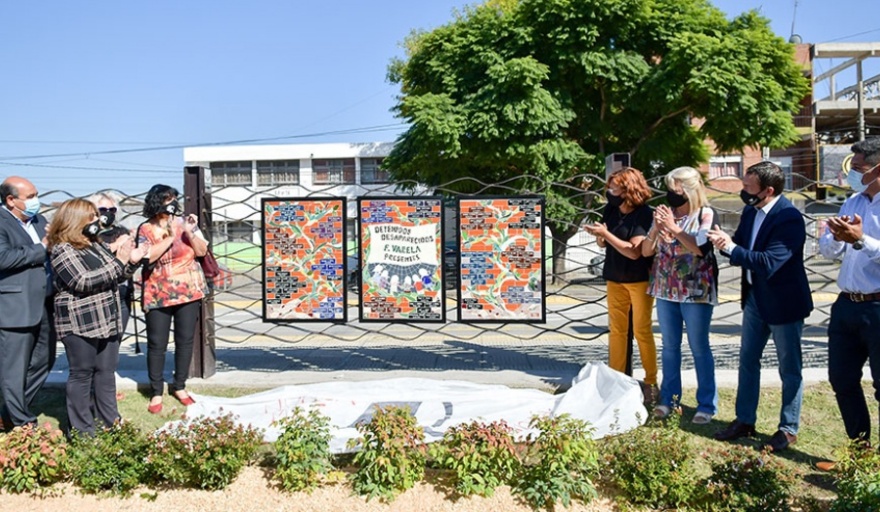 Por su parte, la coordinadora de la agrupación “30 mil pañuelos” -Marcela Sanmartino Carranza- explicó que el colectivo buscó “poner memoria a cada sitio que así lo requiera mediante la colocación de una placa del emblemático pañuelo blanco en colores”.