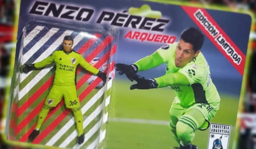 Milonga Customs no perdió tiempo y a horas de la histórica e insólita presentación de River ante Independiente Santa Fe, por Copa Libertadores, lanzó a la venta el muñeco de Enzo Pérez arquero. Los varelenses, que viven en el barrio Pepsi, hicieron un homenaje a la actuación del experimentado volante bajo los tres palos, ante la ausencia de guardametas en el plantel debido al masivo contagio de Covid-19.