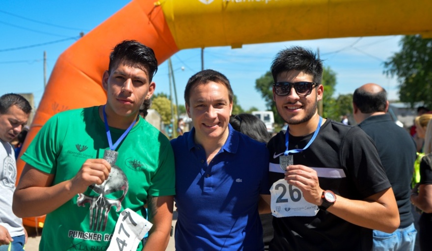 PRESENTES. El Intendente Andrés Watson alentó a los competidores antes de la largada y luego se encargo de entregar a los medallas a los que cruzaban la meta. En esa tarea también fueron encomendados Laura Ravani, Presidenta del Honorable Concejo Deliberante, Christian Rodríguez, Secretario de Gobierno, y Adrián Renzini, Subsecretario de Deportes y Recreación.