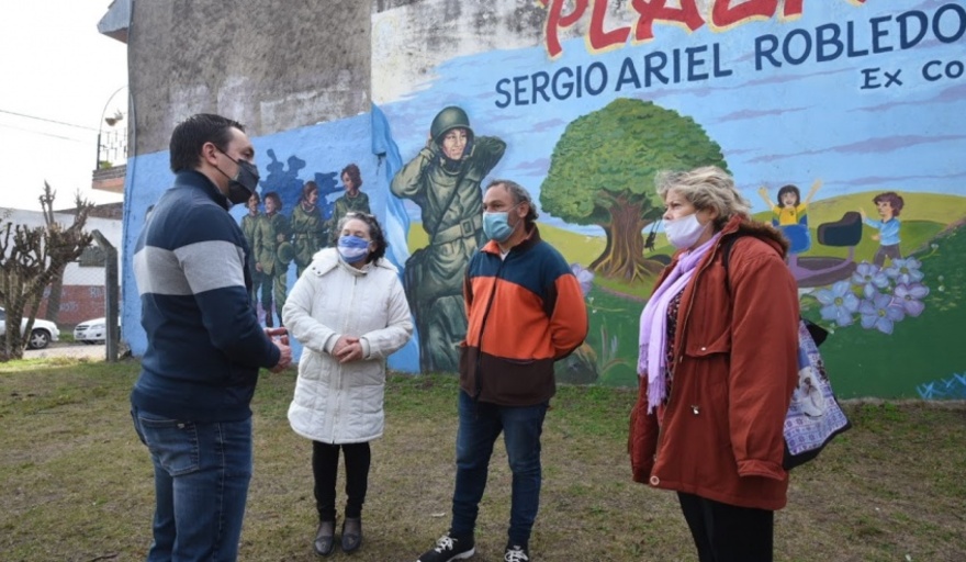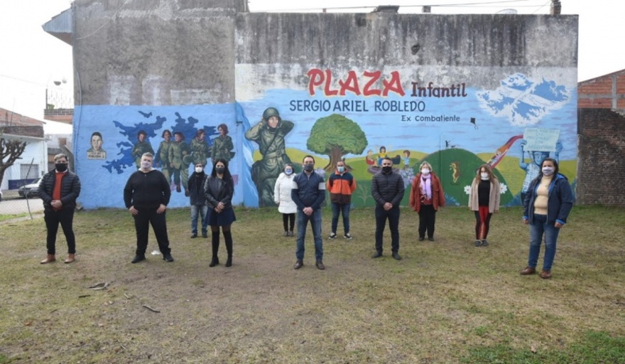El mandatario comunal -Andrés Watson- apreció la tarea de restauración y ampliación de un mural tributo a Sergio Ariel Robledo: un ciudadano del distrito que perdió su vida durante el conflicto bélico del Atlántico Sur desatado en 1982, donde Argentina enfrentó al Reino Unido en disputa sobre la soberanía de las Islas Malvinas, Georgias del Sur y Sandwich del Sur.