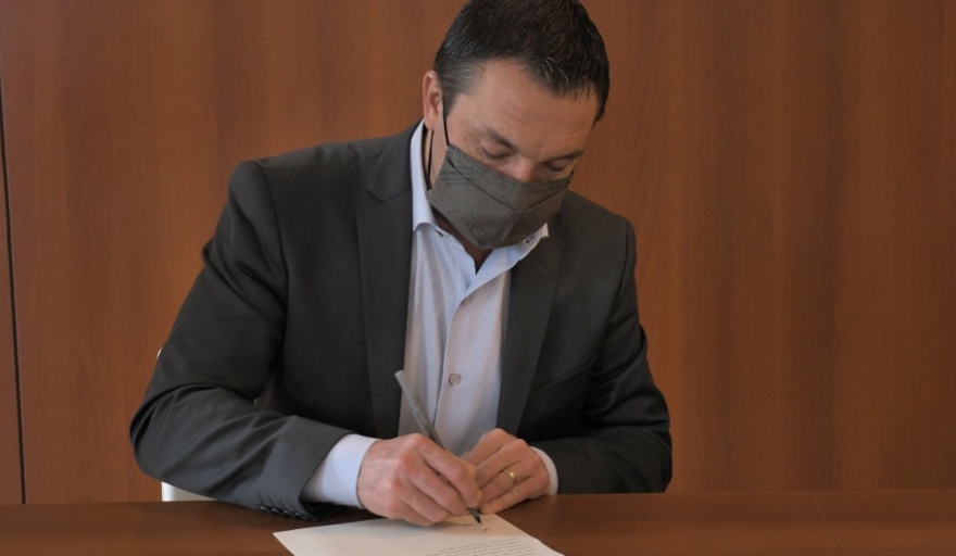 El intendente Andrés Watson formalizó la incorporación al patrimonio municipal de terrenos donados en la localidad de Villa Brown, destinados al programa de lotes con servicios, esta mañana en la Escribanía General de la Provincia de Buenos Aires.
