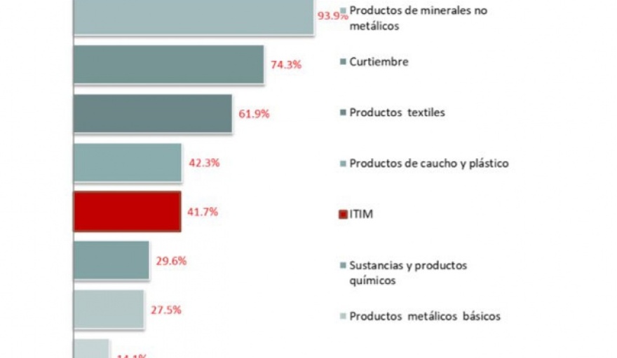 La evolución fue motorizada por el incremento en rubros como la confección de minerales no metálicos (93,9%), curtiembre (73,3%) y productos textiles (61,9%). Sin embargo, también presentaron valores en alza sectores como artículos metálicos básicos (27,5%), químicos (29,6%) más caucho/plástico (42,3%).