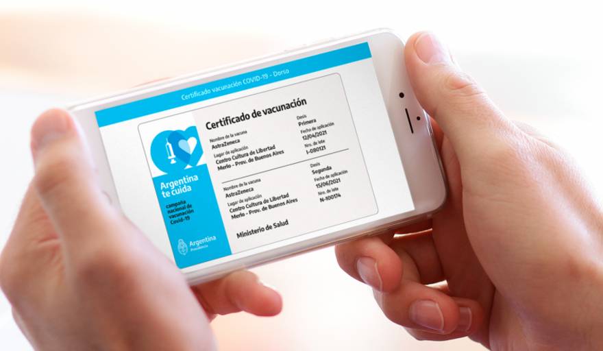 Fue desarrollada por la Secretaría de Innovación Pública de la Jefatura de Gabinete de Ministros y presentada en julio pasado. Tras un trabajo conjunto con el Ministerio de Salud de la Nación, la Dirección de Migraciones; la Administración Nacional de Aviación Civil (ANAC) y el Ministerio de Relaciones Exteriores, Comercio Internacional y Culto sobre su implementación como documento oficial, se desarrolló el carnet digital bilingüe con un código QR que remite al sitio oficial de la cartera sanitaria nacional, donde se accede a la información respaldatoria de la vacunación contra la COVID-19.