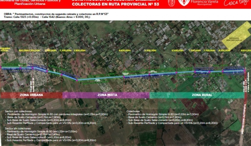 Este martes fue programado el comienzo en la construcción de la segunda calzada junto a colectoras en la RP Nº53, entre las calles 1323 y 1542, transversal a los barrios San Francisco Este y Oeste, Villa Brown Rural, El Alpino, La Capilla más Villa San Luis.