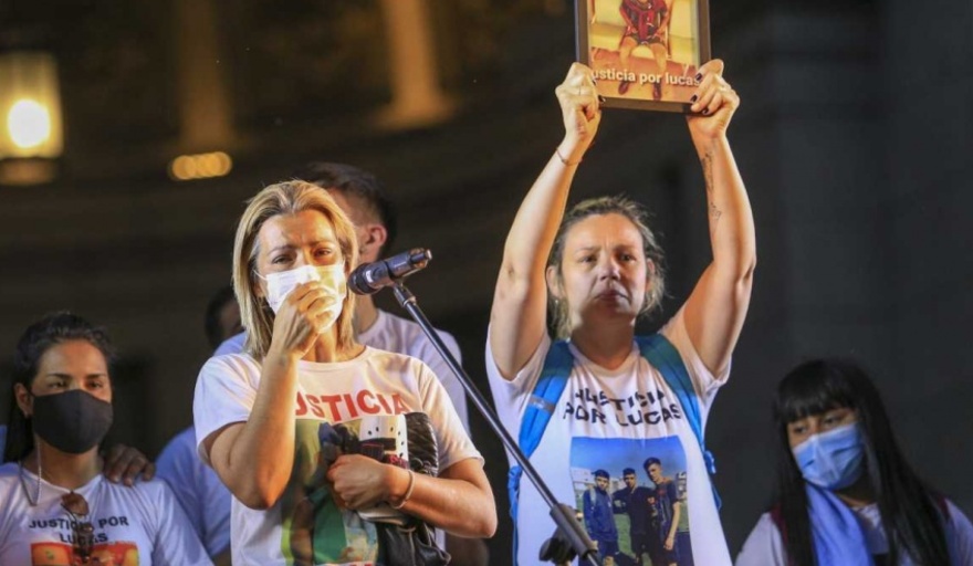 Frente a los Tribunales porteños, donde se levantó un escenario en la puerta principal sobre las escalinatas de ingreso, los padres de Lucas fueron los principales oradores de la manifestación y exigieron "Justicia" por su hijo, reclamaron que los tres policías detenidos por el hecho sean "condenados a prisión perpetua" y pidieron que "no existan más" casos "como el de Lucas".