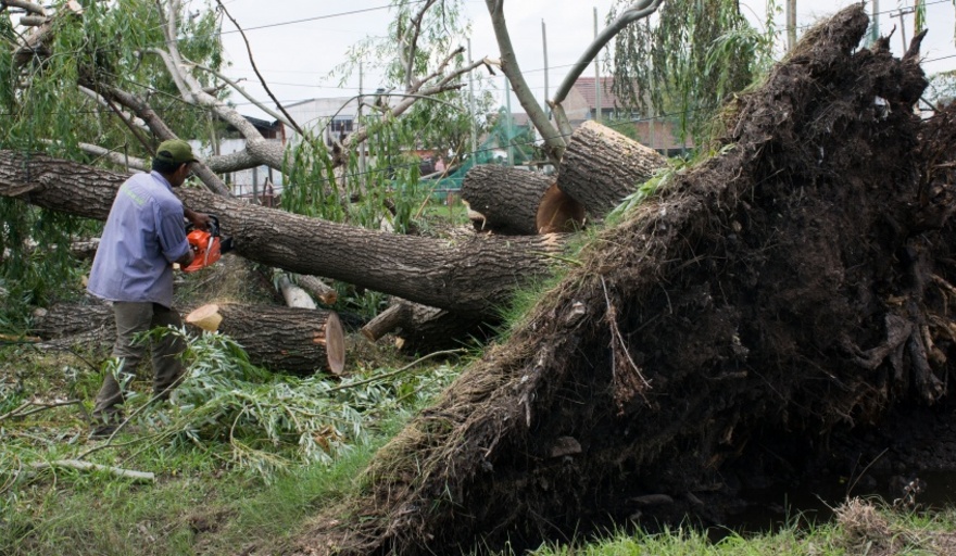 Las ráfagas ocasionan tanto el desprendimiento de las ramas como el movimiento de residuos, por lo que las cuadrillas deben avanzar en la limpieza en calles, avenidas, como también en la infraestructura de desagües en Villa Vatteone, Villa Mónica Nueva, Mayol, El Rocío, Don Orione, Pico de Oro y más barrios.