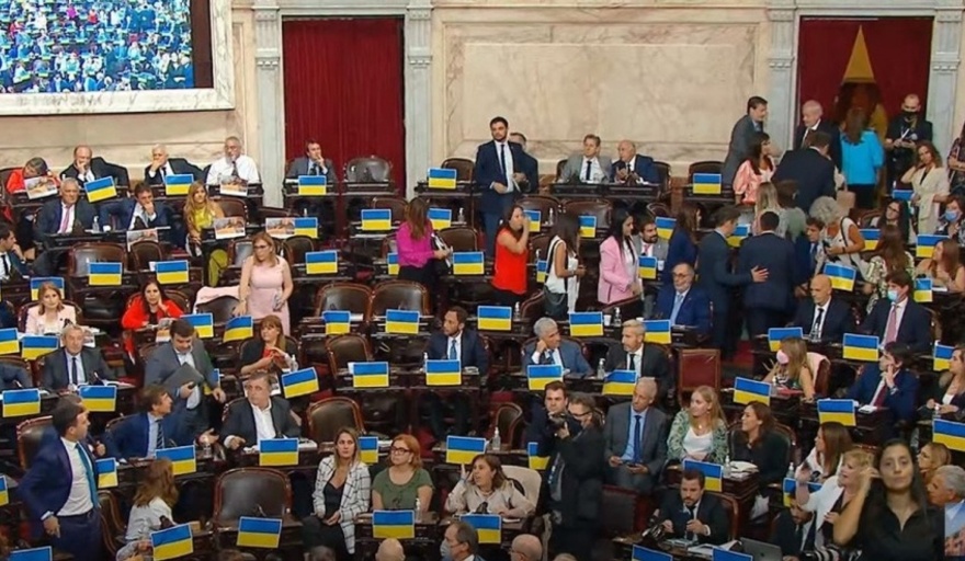 Pese a que todos cuestionaron al Presidente, finalmente solo se levantaron los referentes del PRO y se retiraron del recinto, dejando gran parte de las bancas vacías, las mismas que habían poblado con banderas con los colores de Ucrania.
