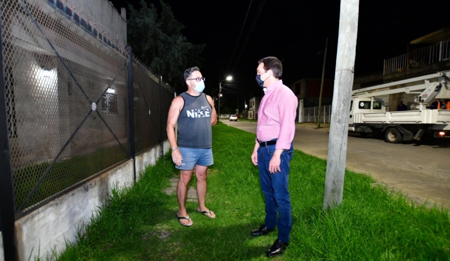 Tras recorrer la zona y dialogar con frentistas, la máxima autoridad varelense detalló aspectos de la intervención desplegada para alcanzar la totalidad de la red con luminarias de esta tecnología. “Colocamos 3300 nuevos artefactos LED en distintos puntos del distrito”, especificó.