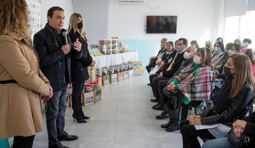 Los kits incluyeron: baldes de mini blocks, sets de masas, extrusores, pizarras imantadas con números más letras, pegamento, cinta adhesiva, lápices de colores, fibras, tijeras, acuarelas, juegos didácticos y de encastre plástico.