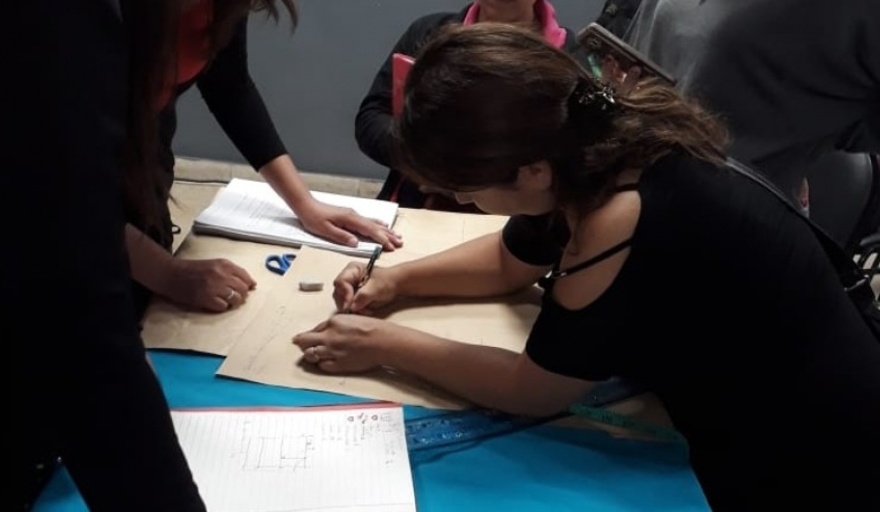 A cargo de la tallerista Paula Negro, licenciada en diseño textil e indumentaria, la primera jornada se realizó el viernes 8 en el que se trabajó en el diseño y molderia de un ponchito guardapolvo para jardin de infantes. Para esta semana se enfocará en el estampado del guardapolvo mediante la técnica textil de sublimación.