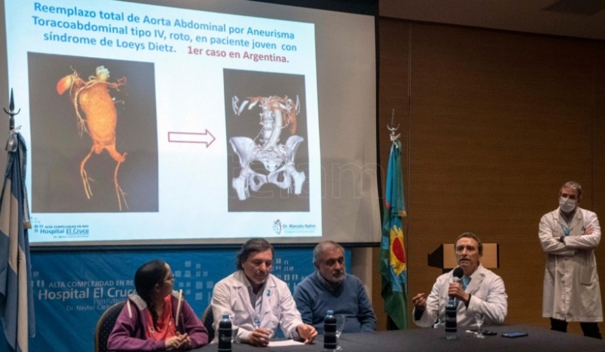 Médicos del Hospital El Cruce de la localidad bonaerense de Florencio Varela realizaron un reemplazo total de aorta abdominal a una paciente de 27 años que ingresó a ese centro de salud con un aneurisma toracoabdominal tipo IV roto, un procedimiento sin precedentes en la Argentina, que fue presentado por los cirujanos del centro de salud.