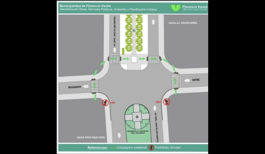 A partir del reordenamiento vial efectuado sobre la avenida San Martín en su cruce con Rivadavia-Mitre, el Municipio inhabilita el paso para peatones sobre el monumento al Libertador de América.