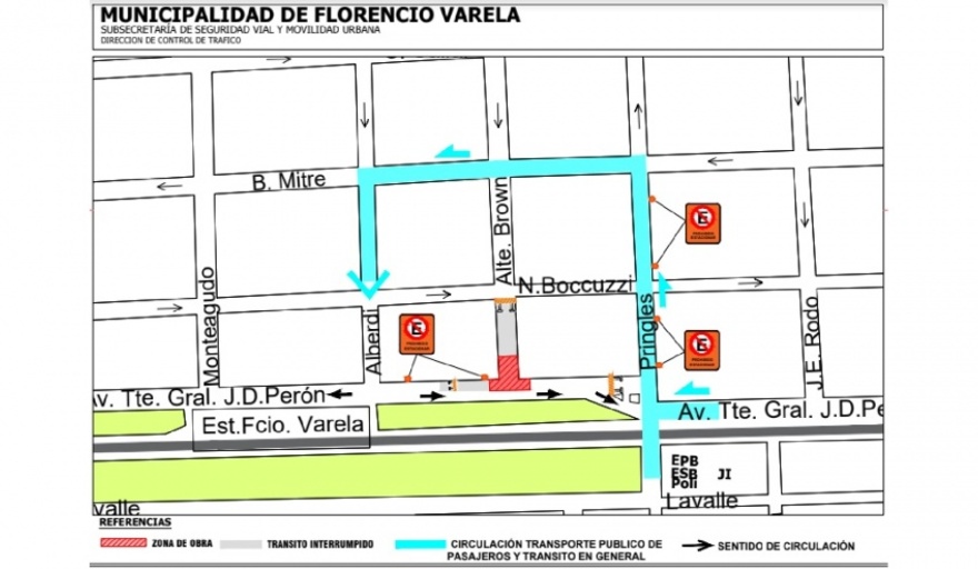 El Municipio varelense comunicó que se estipularon vías alternativas para la circulación de transporte público por intervención vial en el cruce de Alte. Brown con Av. Tte. Gral. Perón iniciadas este viernes 9 de septiembre por un plazo aproximado de 25 días.