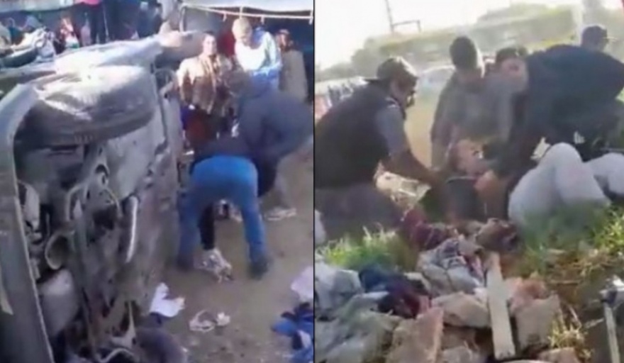 En las imágenes, que se dieron a conocer a través de las redes sociales, se observa como quedó la feria, las personas heridas tiradas en el pasto y el auto Volkswagen Gol dado vuelta.