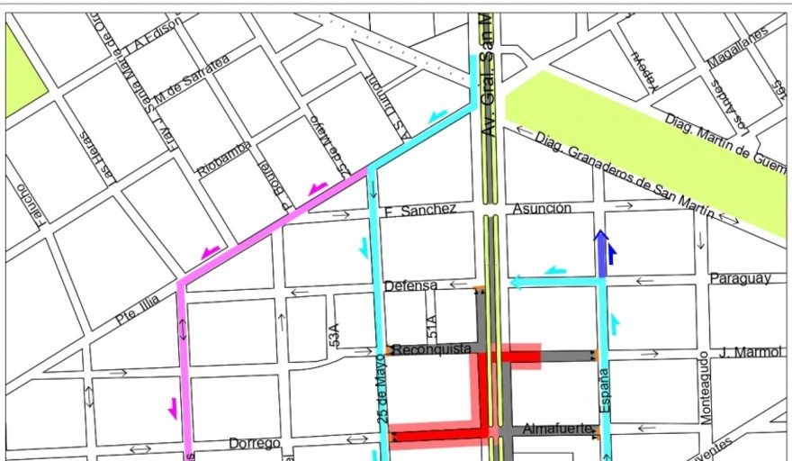 Por otra parte, será interrumpida la circulación en las colectoras de Av. San Martín, tanto en el tramo comprendido por 9 de julio y Mármol como desde Defensa hasta Dorrego.