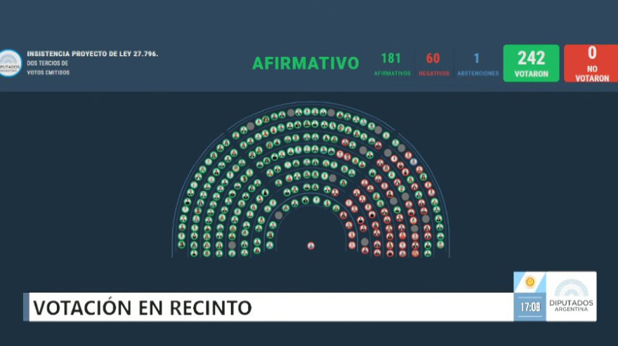La Cámara de Diputados rechazó hoy por por 181 votos contra 60 el veto del presidente Javier Milei a ley de emergencia del Hospital Garrahan, al conseguir los dos tercios que exige la Constitucional para insistir con una ley.
